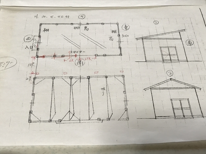 集落の高齢化に伴い、田んぼ面積拡大に伴う、貯蔵倉庫の拡充です。予算と広さの検討を複数案進めました。