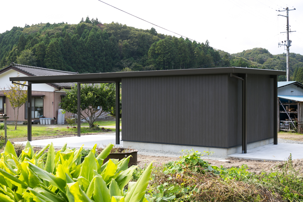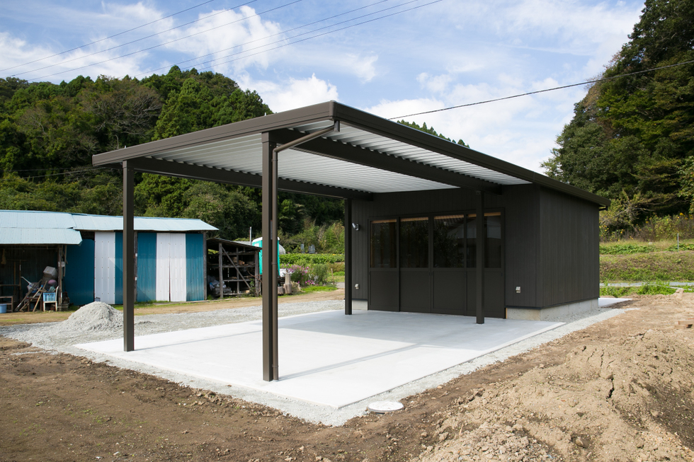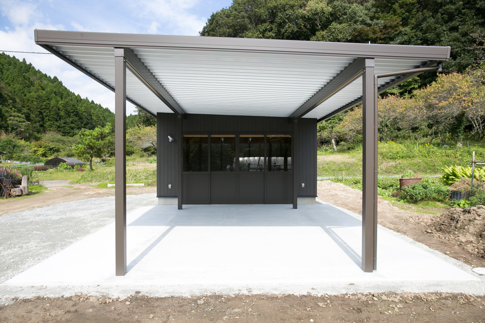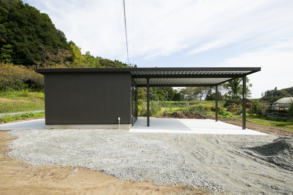 カーポート造なので下屋に柱少なく農作業しやすい。