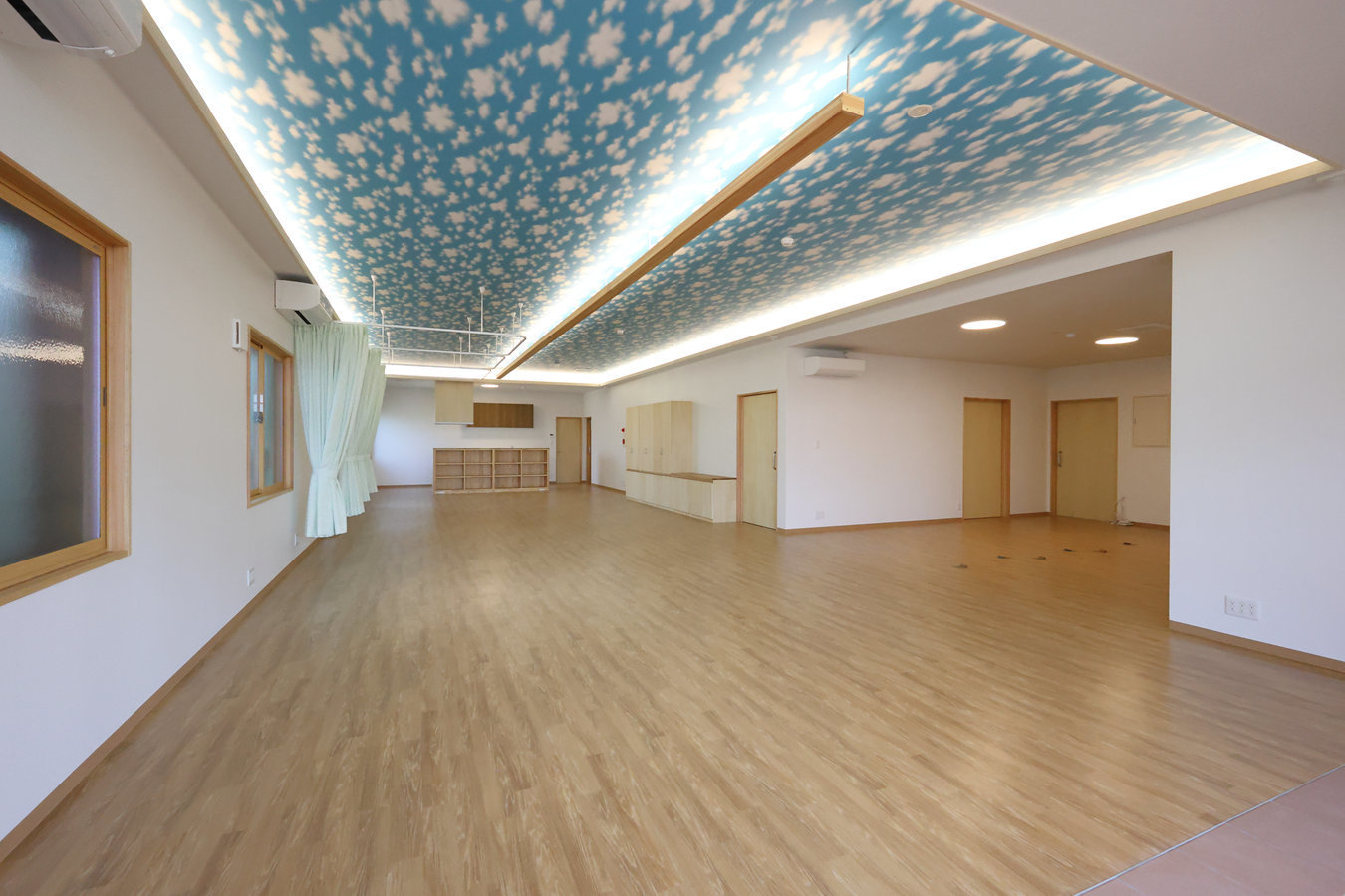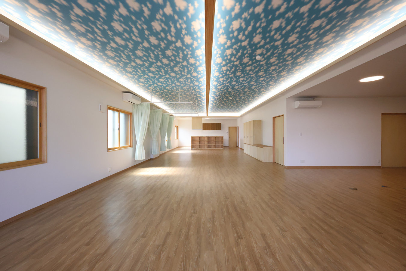 青空天井と間接照明の活動室
