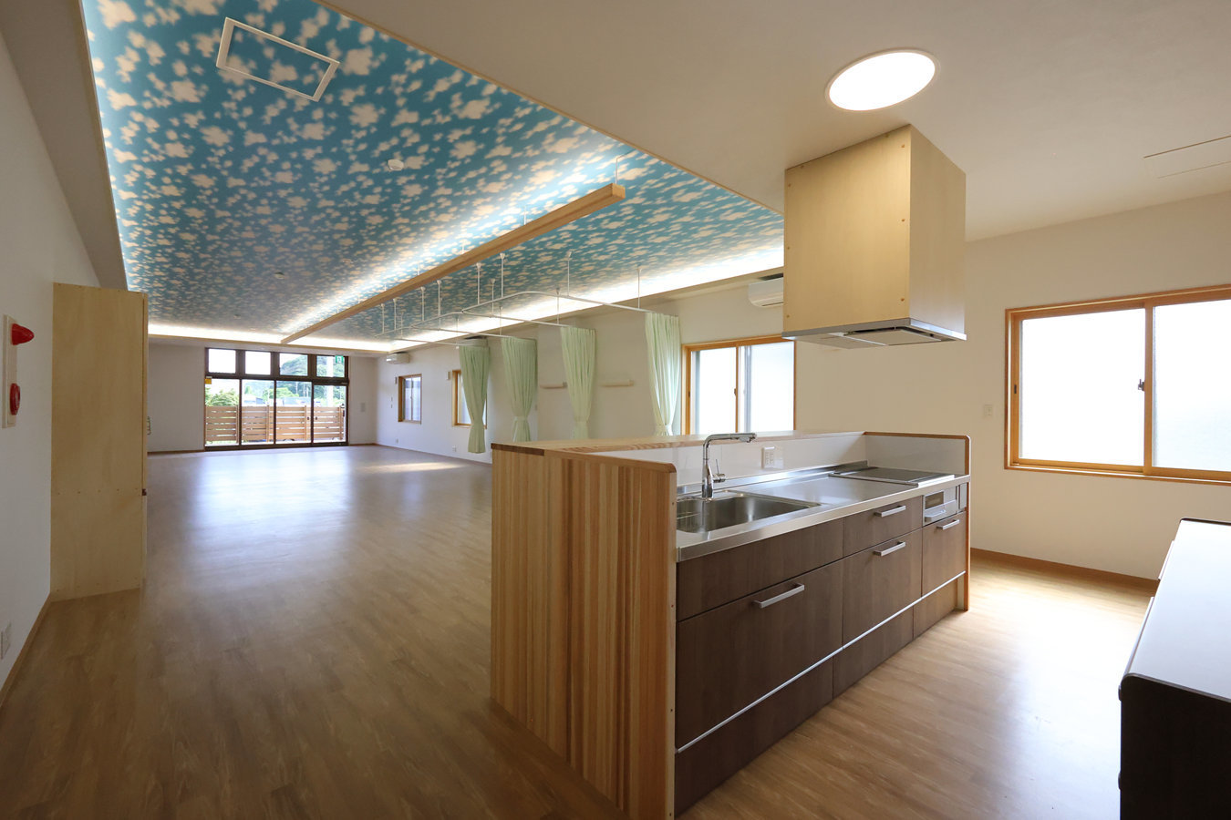 対面キッチンからは活動室、玄関を見通せます。