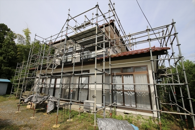 自分で調査して、設計して、工務店へ依頼。バルコニー工事で足場を建てたので、東日本大震災で崩れていた屋根のグシ部分の補修&補強工事などをDIYで行いました。