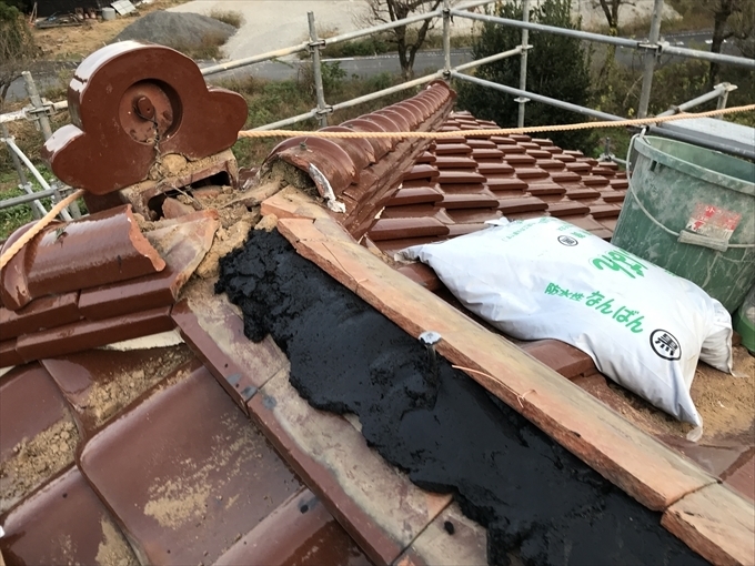 DIYによる屋根瓦ぐし部分の耐震補強DIY工事の様子
