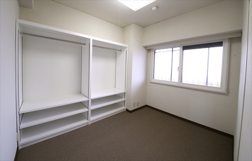 納戸兼クローゼット。スッキリしまえるクローゼット棚を造作工事しました。内窓も設置。床はカーペット張り替え。