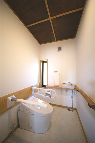 ・引き渡し後に、お母さんの体にあわせ便所脇手すりの位置は変更した。(老化現象は変化していくため、手すりの必要な位置が変化していきます。)