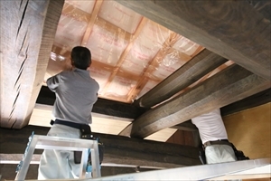 いわき市内の築250年以上の古民家をエコ改修です。古く立派で大きな古民家。お施主さんは、解体すべきかリフォームすべきかを悩まれていました。住み慣れ、歴史ある建物を壊してよいものか?小屋裏には立派な梁組があります。すべてをリフォームするのではなく、部分的なリフォームとし、介護をしやすいプランニングを行い、冬寒くない住まいとするためにエコリフォームを行いました。