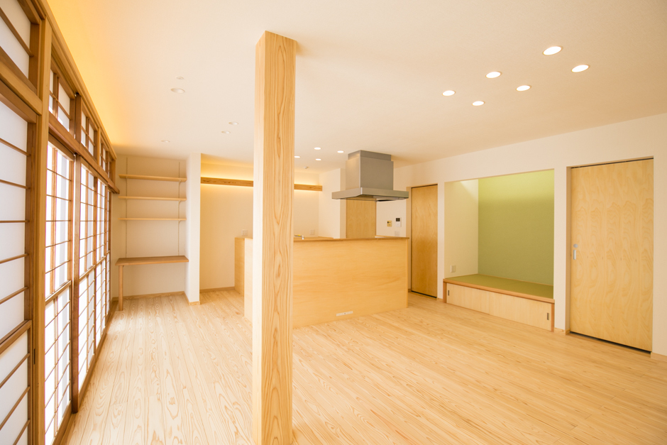 昭和60年代の中古住宅リノベーション。建物劣化少なく、和なつくりの中古住宅の障子を活かすデザインへ。