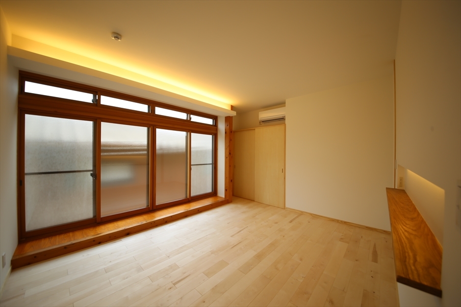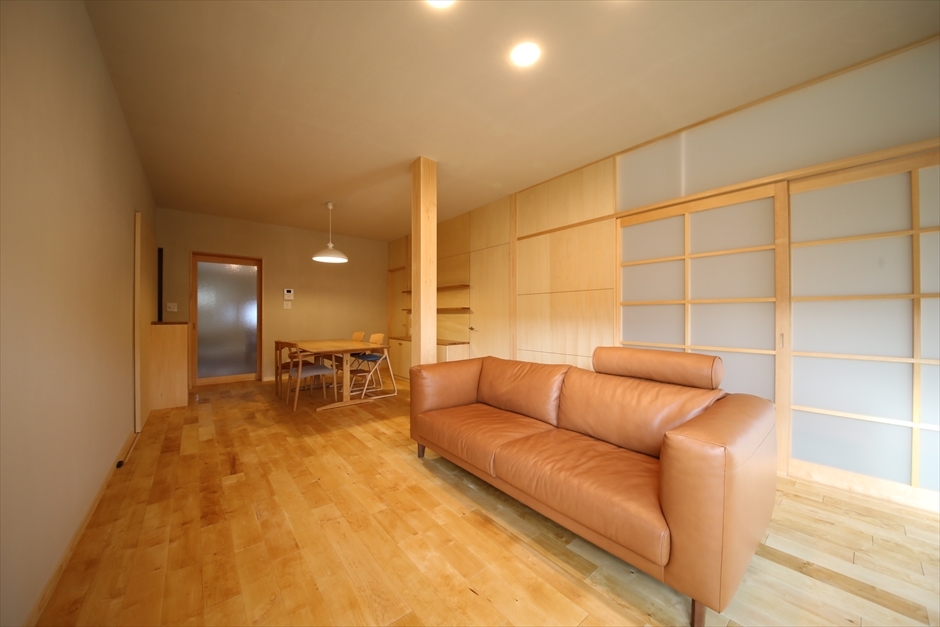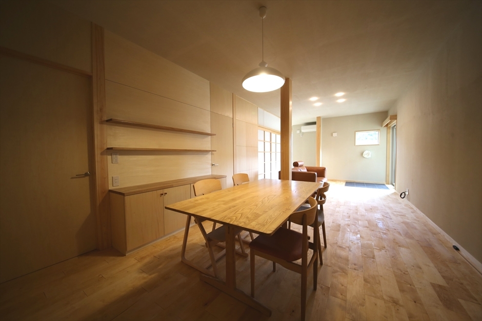 もともとは、地域の方が集う料理店の建物。お施主さんのお父様が建てられたお店でした。柱や梁は太いものを利用し、カウンターや床の間の材料はケヤキなどのいい材料を使った建物でした。建物自体の傷みも少なく、解体するにはもったいない建物でした。お施主さんは、店舗として手放すことも考えましたが、住まいとして活用できないのかどうかというご相談をいただいたことで、店舗を住宅へエコリフォームを行うことになりました。