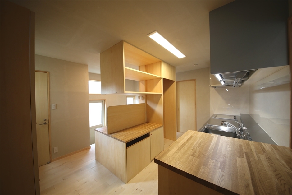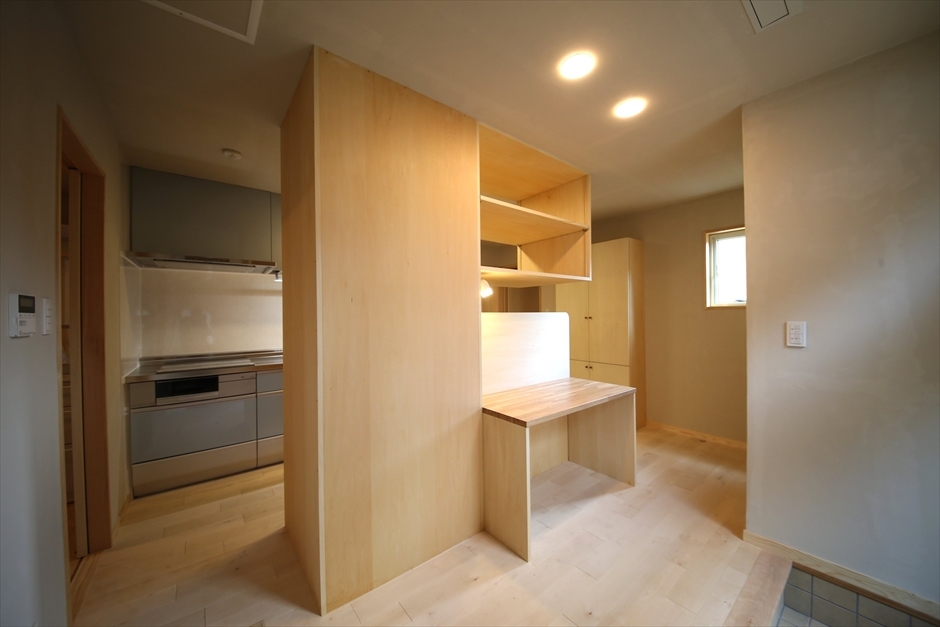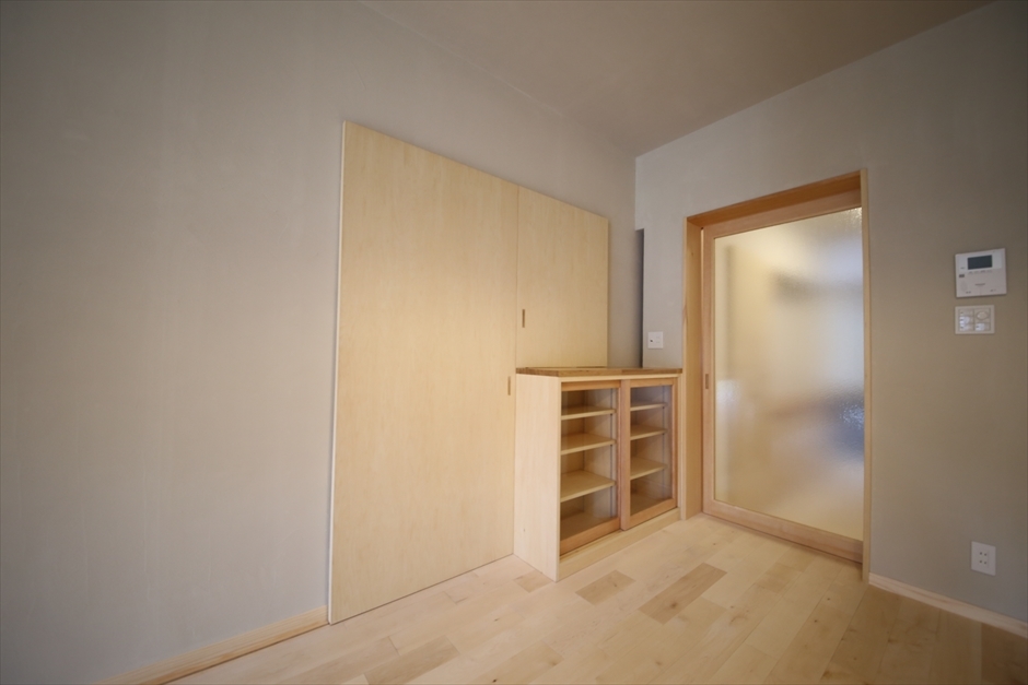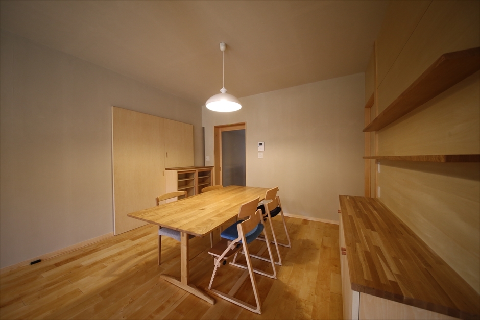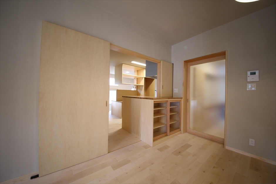 今回のプランでは、元々厨房エリアに、住宅の台所、洗面所、浴室、便所を集約することで、水道やガス、排水などの更新を行いやすくしています。また、厨房わきの倉庫は、台所の倉庫としても利用しやすいので倉庫利用しています。しかし、この部屋は断熱ラインから外側にすることで、野菜や漬物など冬季に寒さがほしいものでも安心して貯蔵しておけるようにしています。