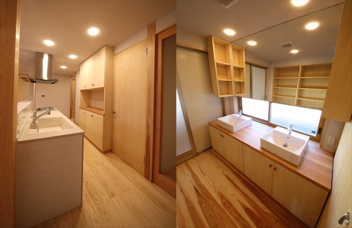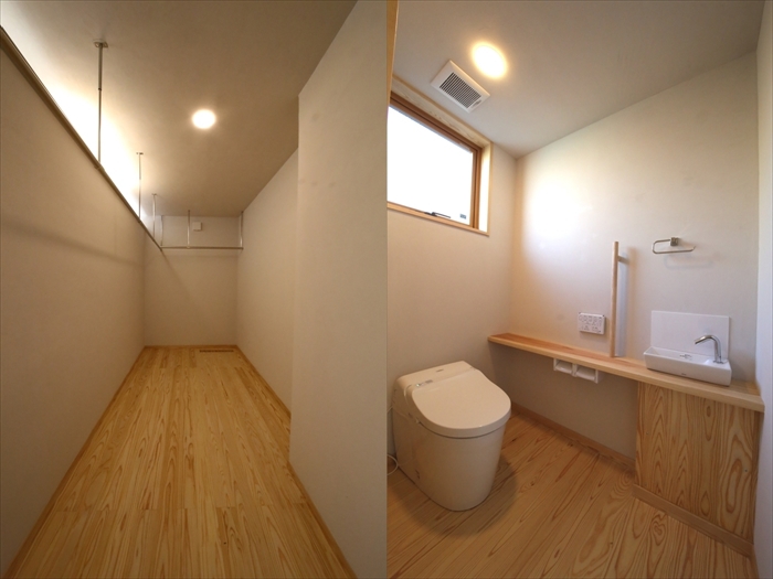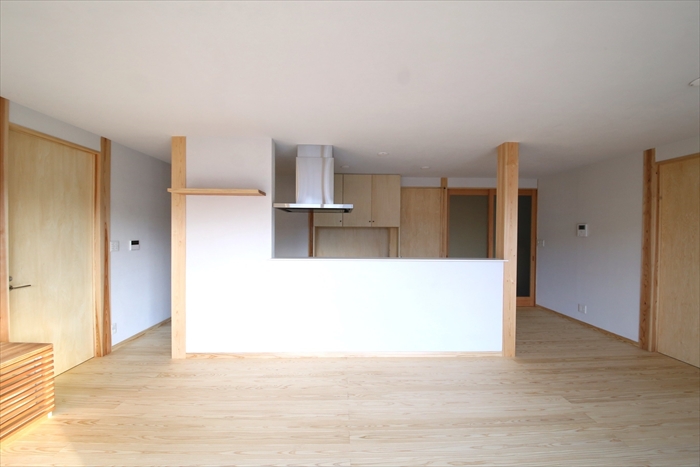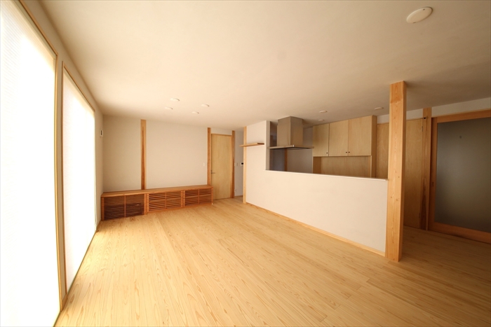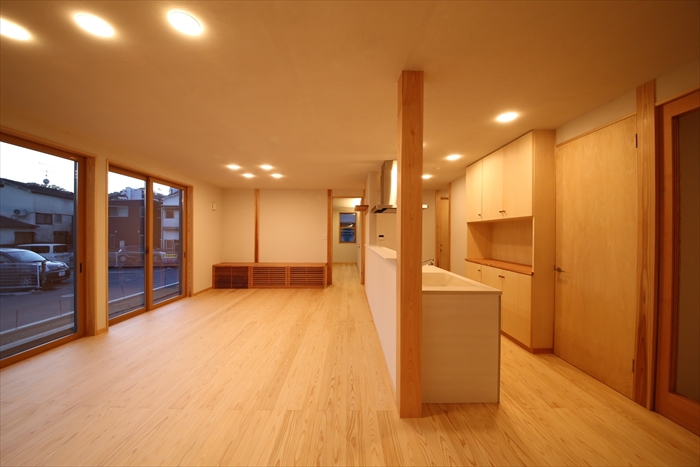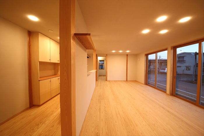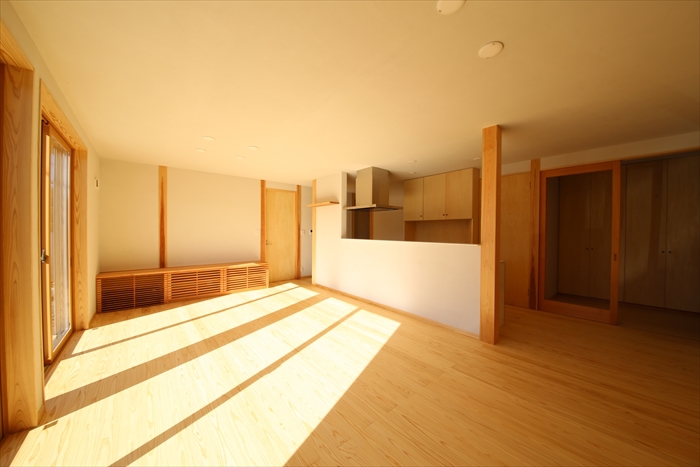福島県産材を構造躯体に使い、床はあつ密杉フローリング、壁は中霧島で調質効果があります。