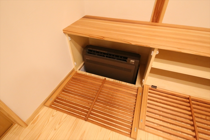 冷暖房は、床下空間へエアコンを設置することで、ローコストな床冷暖房としています。