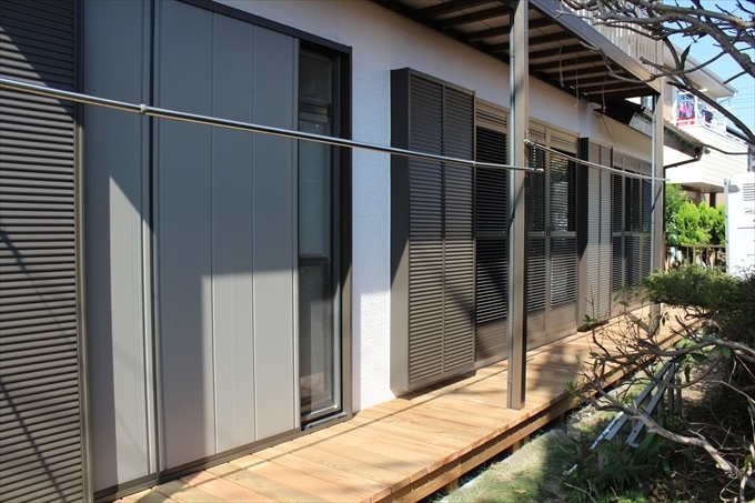 震災後、住まいの省エネ方法をPRできるよう、農民連事務所へ様々な省エネの仕組をデザインした、あぐりエコステーションという物件があります。そこでは、南側の窓の上に、すだれを設置しやすいよう、すだれフックを設置しています。