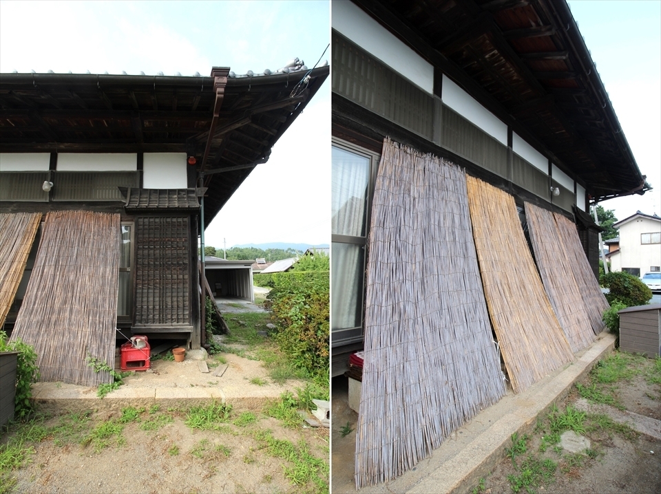 すだれ使っていたりします。緑のカーテン的な部分もああります。