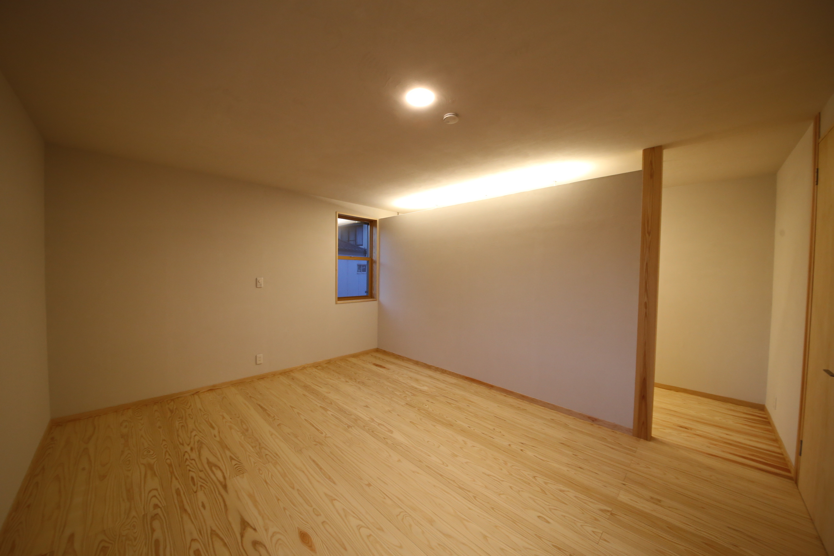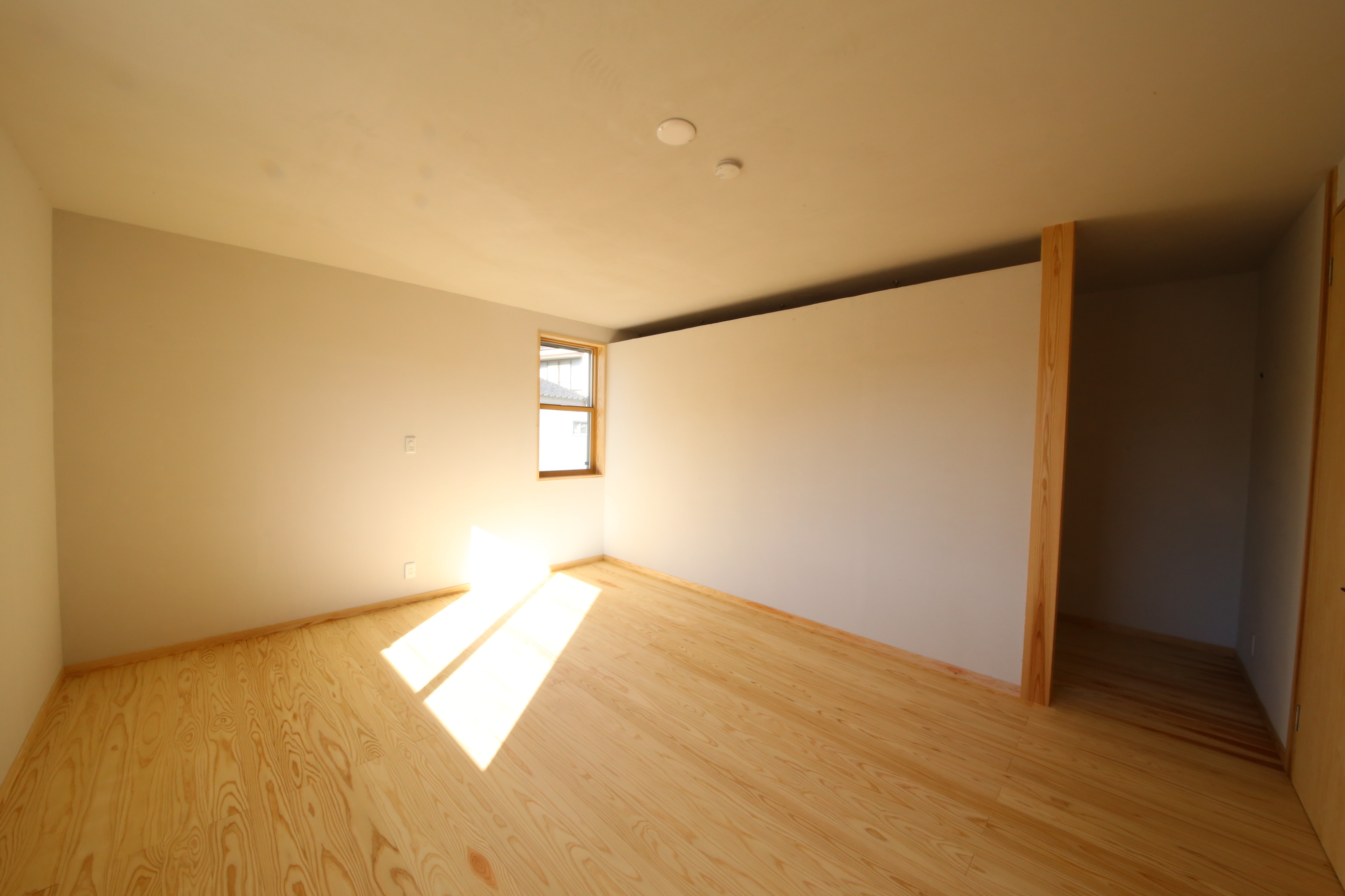 寝室とWICの間には建具も設置していません。WIC側の換気扇、基礎断熱による床下温風が部屋を循環しやすいようなつくりになっています。