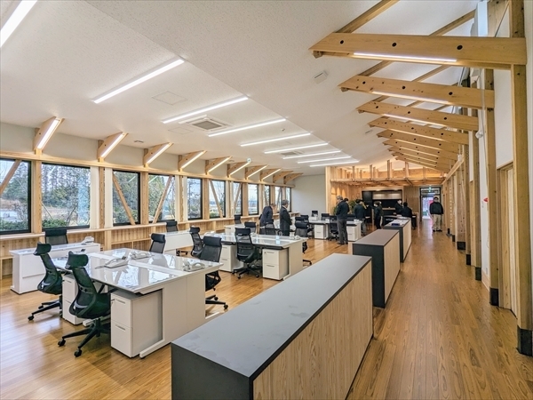 県産材で建設された児湯森林組合の竣工式が次の日に行われました。施設見学へ。みやざき木造マイスターの連携によりプロポーザルで選定された設計者が設計。設計段階から構造設計、製材所と連携し実現した見本となる実例。早速、会津へ事例紹介しました。