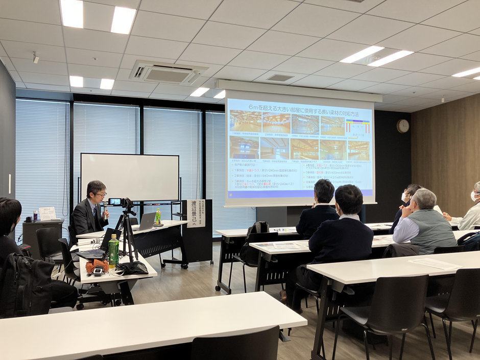 第二回研修会では、北瀬がコストに関連する情報や全国の事例情報などを紹介しました。電車の脱線事故があり、会場へたどり着けなくなり急遽WEB講義になりました。事前に木質化に関する定義や疑問が多数あったので、関連情報なども紹介。コストに関する情報を伝えたところ、思っていたほど木造は高くないということが分かった。というコメントを頂けて良かったです。