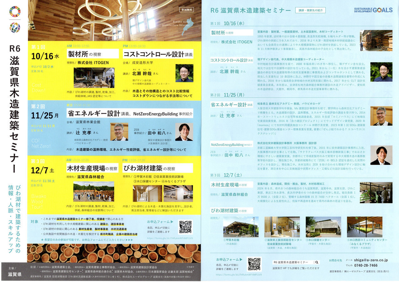 2024年10月16日に滋賀県で行われた木造建築セミナーの講師を務めました。非住宅木造建築を推進するために、木造と他構造とのコスト比較情報やコストダウンにつながる手法等について話をしました。