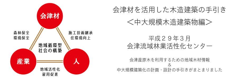 「会津材を活用した木造建築の手引き<中大規模木造建築物編>」が平成29年3月にまとまりました。