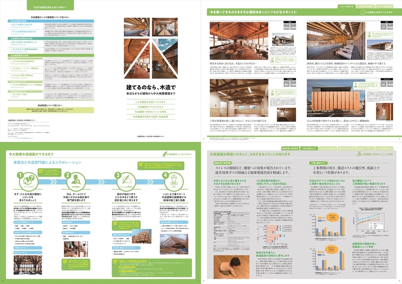 また、木造化を実現しやすくするための各地での協議会等組織づくりの情報や木造事例の内容が具体的な情報なので参考になります。