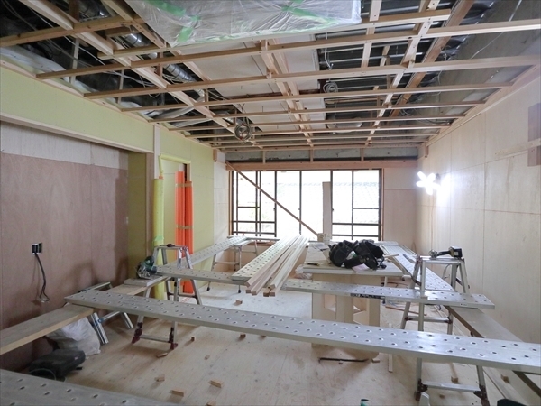 新しい下地が仕上がってきました。換気やエアコンなども新設です。