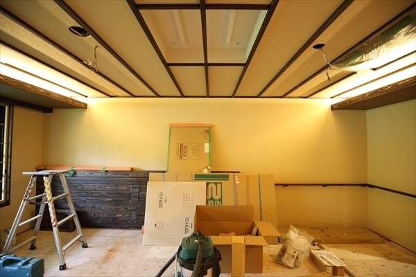 照明も設置され間接照明の確認です。仕上げや造作家具の設置も完了しいよいよ引き渡し竣工へ。